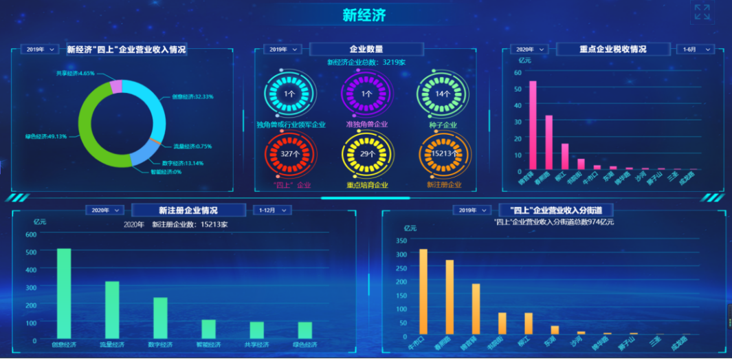 面向地方政府經濟管理工作的現實需要,實現了政府各部門經濟數據的全生命周期管理。整合政府各經濟部門數據資源,并對實時、交互、離散化和非結構的海量數據進行融合處理,建立可持續優化的各類監測分析模型、涵蓋“企業微觀經濟”、“產業中觀經濟”和“空間中觀經濟”以及“區域宏觀經濟”多個層面,覆蓋政府經濟管理過程中數據采集、監測預警、運行分析、決策支撐和執行督導多個應用場景,實現對地方高質量發展、產業布局優化的信息支撐價值,進而形成引領地方經濟發展的新引擎。